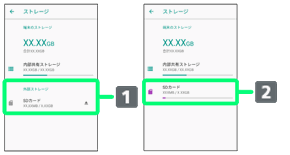 • 内部ストレージ化したSDカードは、本機以外では使用できなくなります。SDカードを外部ストレージとして再度使用したいときは、次の操作で外部ストレージに戻すことができます。