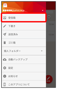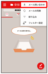 • 受信箱画面で下にドラッグ/フリックしても新着メールの確認ができます。