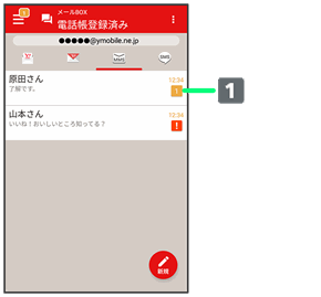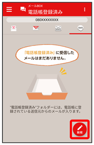 • 電話帳に登録済みの相手とのメールを確認するときは、電話帳登録済みをタップします。