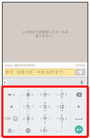 • ↓メール送受信画面で本文入力欄をタップ