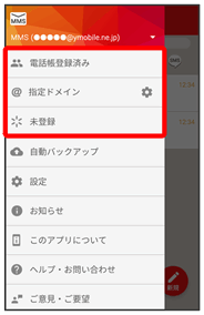 • 指定ドメインに設定した相手とのメールを確認するときは、指定ドメインをタップします。