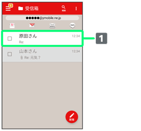 • ↓受信箱画面でメールのandroidone-s4_icon_069androidone-s4_icon_060表示)