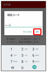• 認証コードは、正しい通信相手かどうかをお互いに確認するための暗証番号です。送信側/受信側で同じ数字(4桁)を入力します。特に決まった数字ではなく、その通信限りのものです。