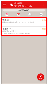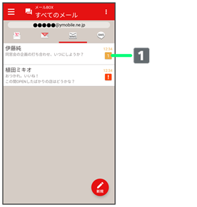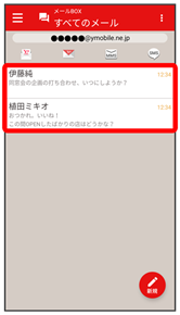 - 相手を限定せずに、迷惑メール以外の受信したすべてのメールを確認するときは、すべてのメールをタップします。