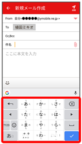 - CcやBccで送信したい場合は、Cc,Bccをタップして、