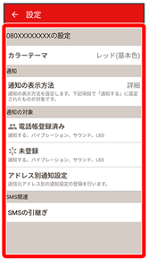 | 未登録 | 電話帳に未登録の相手からメールを受信したときの通知方法を設定します。 | |
