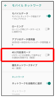 VoLTEは4Gサービスを利用します。本機の4Gサービスが無効になっているときは、利用できません。VoLTEが利用できないときは、次の操作で4Gサービスが有効(