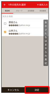 - 宛先入力をタップすると、宛先を直接入力できます。また、入力した宛先を電話帳に登録することもできます。