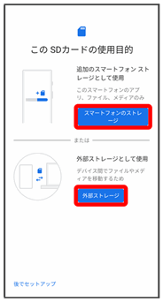 内部ストレージとして使用するには、SDカードのフォーマット(初期化)が必要です。