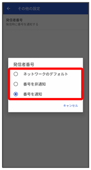 | 発信者番号通知 | お客様の電話番号を相手に通知したり、通知しないようにしたりできます。 | |