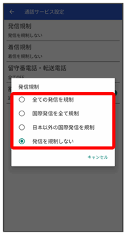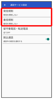 発信規制/着信規制が設定されます。