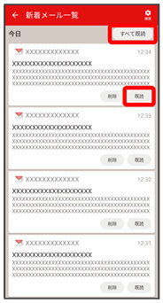 • ↓新着メール一覧画面で既読すべて既読
