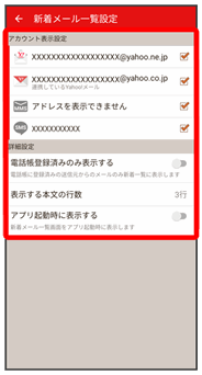 新着メール一覧に表示するアカウントを変更する
