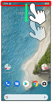 • ↓ステータスバーを下にドラッグ/フリック