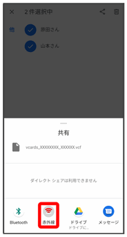 プロフィールや連絡先データ、ファイルなどが送受信できます。