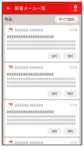 • 新着メール一覧画面で削除する新着メールの削除