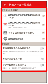 新着メール一覧設定画面が表示されます。