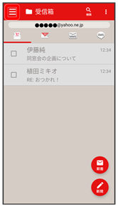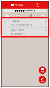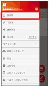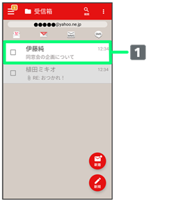 - 受信箱画面でメールの