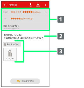 - 添付ファイルあり。タップすると添付ファイルの保存ができます。