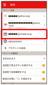 - Y!mobile メール設定画面で、Y!mobile メールのアカウントをタップ
