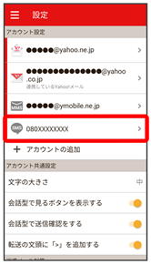 - Y!mobile メール設定画面で、SMSのアカウントをタップ