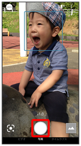 をタップ、または音量Upキー/音量Downキーを押すと写真が撮れます。フォーカスロックをしている場合、フォーカスマークをタップしても写真が撮れます。