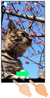 - 画面下部の撮影モードを左右にドラッグして写真を選択