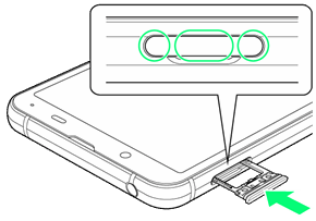 • ↓SIM/SDカード挿入口に、カードトレイを差し込む