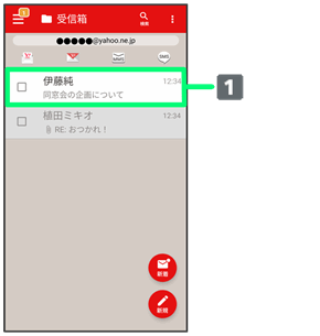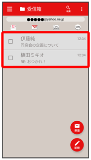 受信箱画面で下にドラッグ/フリックしても新着メールの確認ができます。
