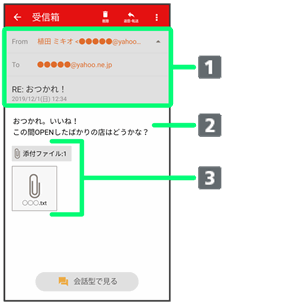 添付ファイルあり。タップすると添付ファイルの保存ができます。