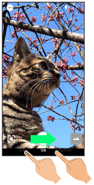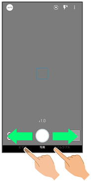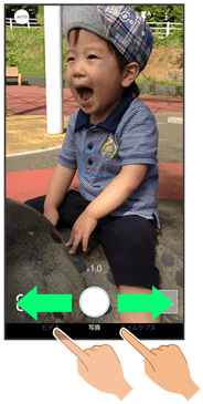 上下にドラッグして撮影モード(ビデオ/写真/タイムラプス)を切り替えます。