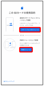 内部ストレージとして使用するには、SDカードのフォーマット(初期化)が必要です。