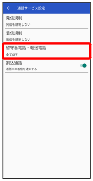 留守番電話・転送電話画面が表示されます。