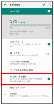 VoLTEは4Gサービスを利用します。本機の4Gサービスが無効になっているときは、利用できません。VoLTEが利用できないときは、次の操作で4Gサービスが有効(