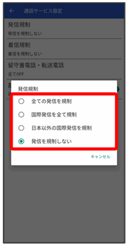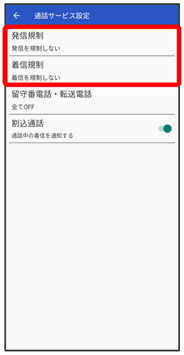 発信規制/着信規制が設定されます。