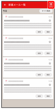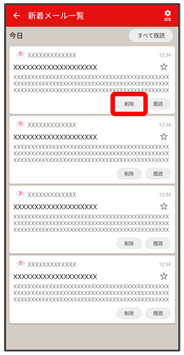 • ↓新着メール一覧画面で削除する新着メールの削除