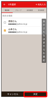 • 宛先入力をタップすると、宛先を直接入力できます。また、入力した宛先を電話帳に登録することもできます。