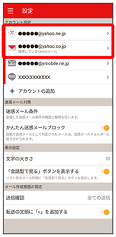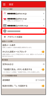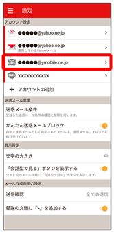 • Y!mobile メール設定画面で、Y!mobile メールのアカウントをタップ