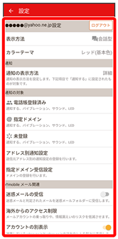 設定できる項目は次のとおりです。Yahoo!メールの設定も同じ項目です。