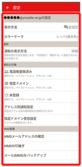 Y!mobile メールに関する設定を行います。