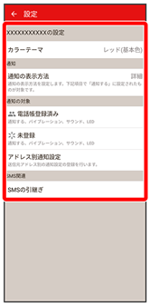 電話帳登録済み 電話帳に登録済みの相手からメールを受信したときの通知方法を設定します。