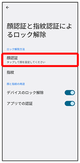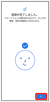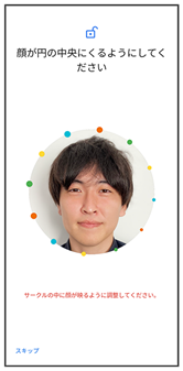 顔のデータを登録すると、顔認証によるロック解除ができるようになります。