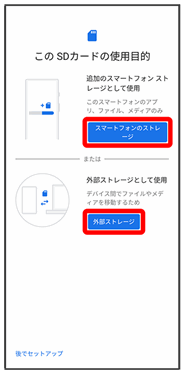 内部ストレージとして使用するには、SDカードのフォーマット(初期化)が必要です。