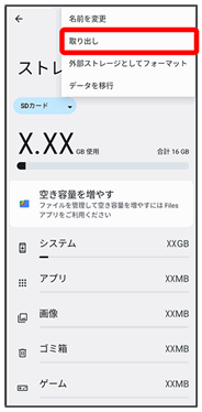 SDカードを取り外すときは、必ずマウントを解除してください。