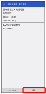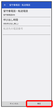 • 呼び出し時間を変更する場合は、留守番電話・転送電話画面で呼び出し時間→時間をタップ→確定と操作してください。