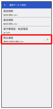 • 割込通話androidone-s9_icon_098androidone-s9_icon_097をタップするたびに、ON/OFFが切り替わります。