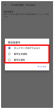 • ↓ネットワークのデフォルト番号を非通知番号を通知