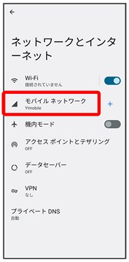 • 無効(androidone-s9_icon_052)になっているときは、5G/4G/3G/GSM4G/3G/GSM5G/4G/3G4G/3Gをタップして有効(androidone-s9_icon_051)にしてください。