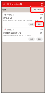 • 既読をタップすると、タップしたメールが既読になります。