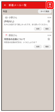 • ↓新着メール一覧画面で既読すべて既読